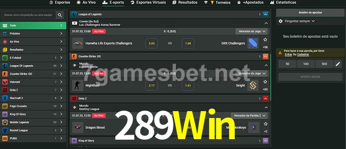 A aposta 289Win oferece aos jogadores a experiência mais conveniente de apostas em eSports!